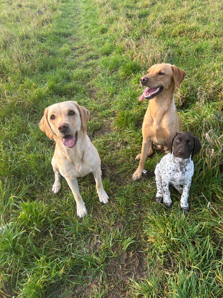 Zu meiner Familie gehören mein Mann, meine beiden Söhne, sowie aktuell die Labrador Hündinnen Feenia (*2021) und Miss Macy (*2024) und unsere Deutsch Kurzhaar Hündin Gemma (*2025)